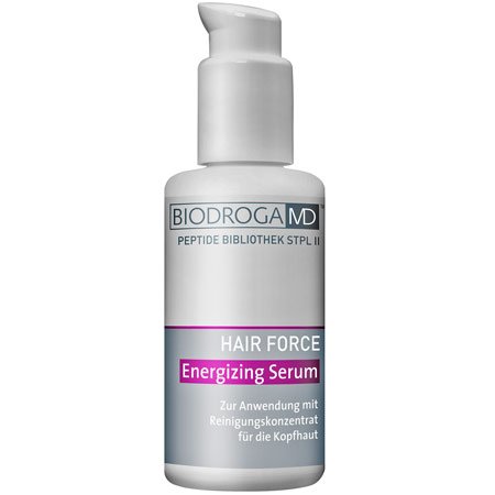 Biodroga MD Hair Force Energizing Serum Das BIODROGA MD HAIR FORCE Serum ist speziell zum Auftragen auf die Kopfhaut bei dünner werdendem Haar und androgenetisch bedingtem Haarausfall. Die Vitalität des Haares wird wieder hergestellt. Die PEPTIDE STPL II fördern die Bedingungen für das Haarwachstum, optimieren das Haarvolumen und stärken Haarstruktur und -textur. Koffein fördert die Durchblutung der Kopfhaut und schützt die Haarwurzeln. Vitamin E-Acetat baut die Haarstruktur auf und wirkt antioxidativ gegen Freie Radikale. Biotin fördert das Haarwachstums. Panthenol versorgt die Kopfhaut mit wertvoller Feuchtigkeit und hat besänftigende Eigenschaften. Lecithin pflegt Haar und Kopfhaut. Schwarzer Haferextrakt ummantelt das Haar mit einem unsichtbaren, schützenden Film, kittet geschädigte Stellen und schützt das Haar vor Feuchtigkeitsmangel. Weizenprotein macht das Haar geschmeidig und gibt ihm Festigkeit. Wirkt bei regelmäßiger Anwendung dem Haarausfall entgegen ...