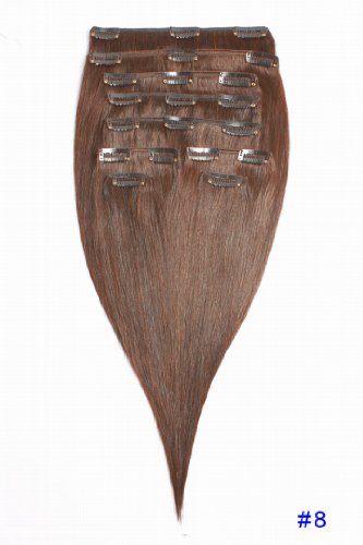 Clip In Extensions 1Set 100% Echthaar 6teilig 140g Haarverlangerung 22"55cm Clip-In Hair Extension. Farbe #8 Hellbraun