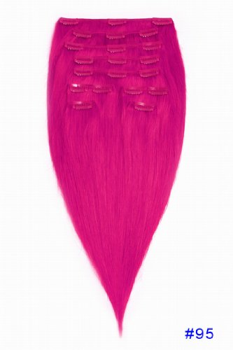 Clip In Extensions 1Set 100% Echthaar 6teilig 140g Haarverlangerung 20"50cm Clip-In Hair Extension. Farbe #95 Pink Spesification